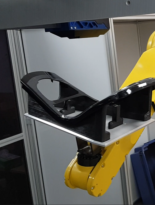 Once the full artwork has been printed, the robot presents the component to a final UV curing station where the image is completely cured.